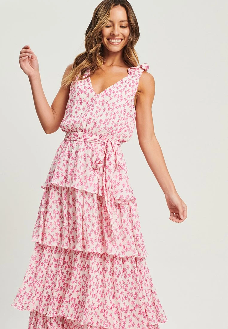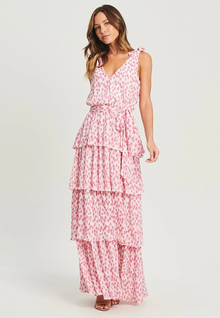 Tussah Angela- Maxi-Jurk – Pink Floral Plisse