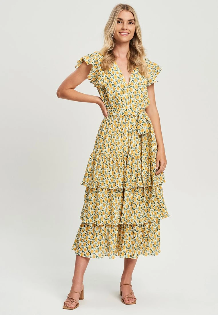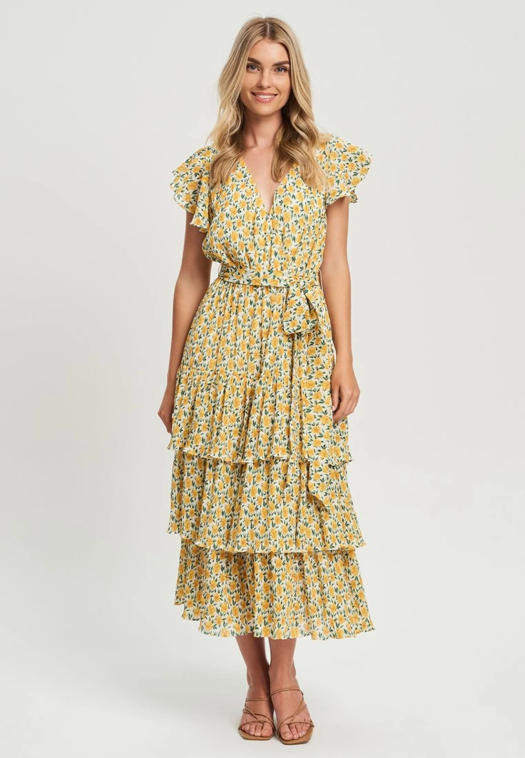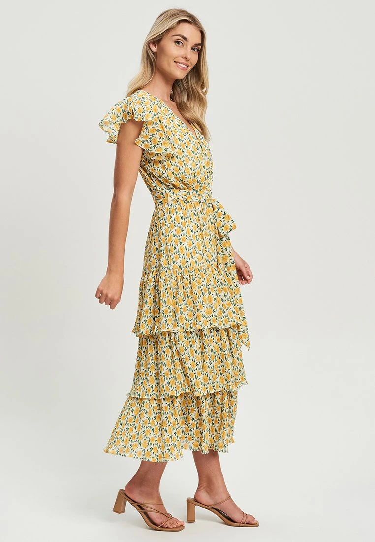 Tussah Artilia- Jurk – Plisse Floral Yellow