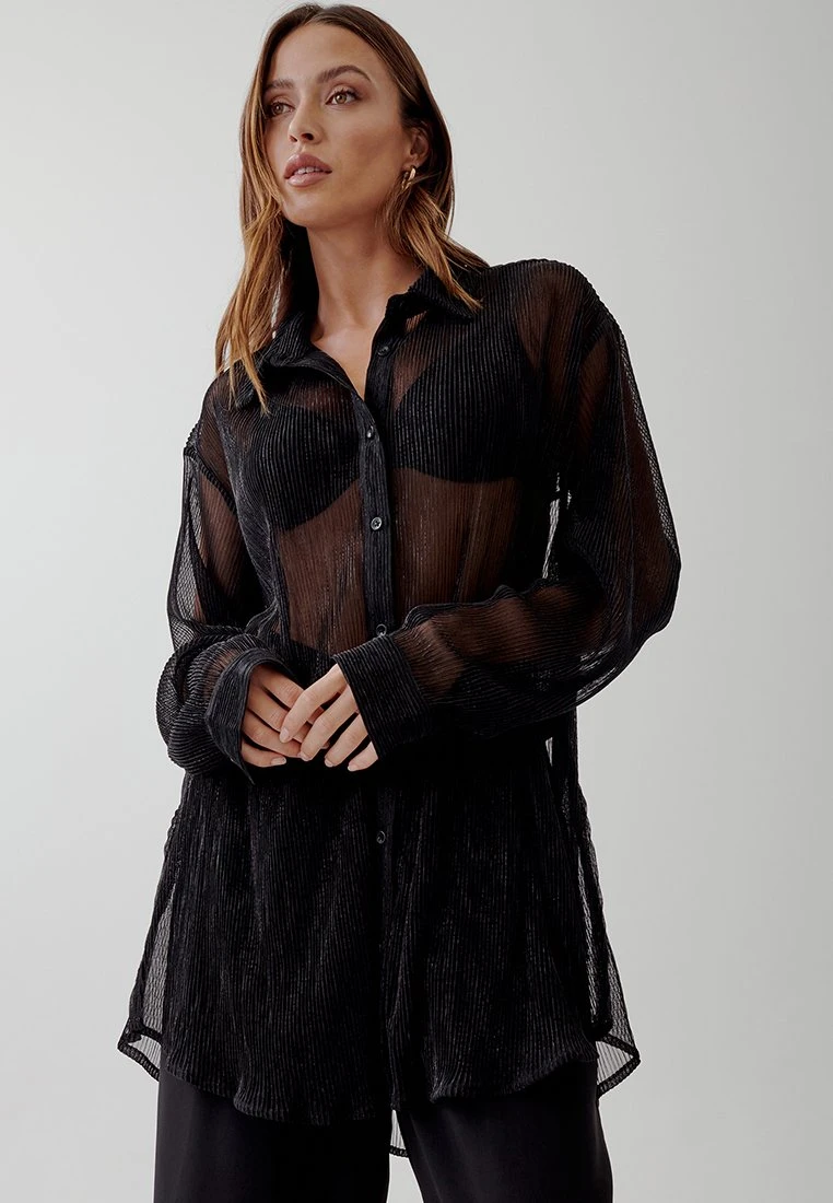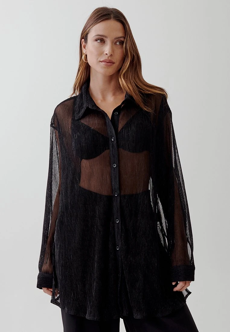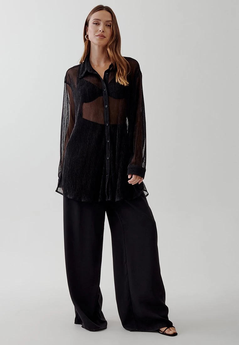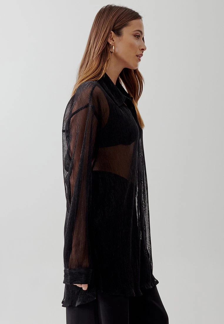 Tussah Nereides – Overhemdblouse – Black Metallic Plisse